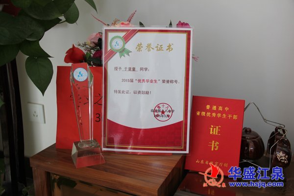 沈泉庄居民于童童夺得今年高考我区文科总分第一名