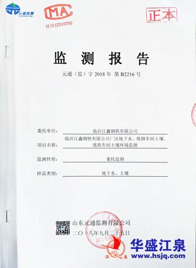 临沂江鑫钢铁有限公司厂区地下水、炼钢车间土壤、炼铁车间土壤环境监测报告
