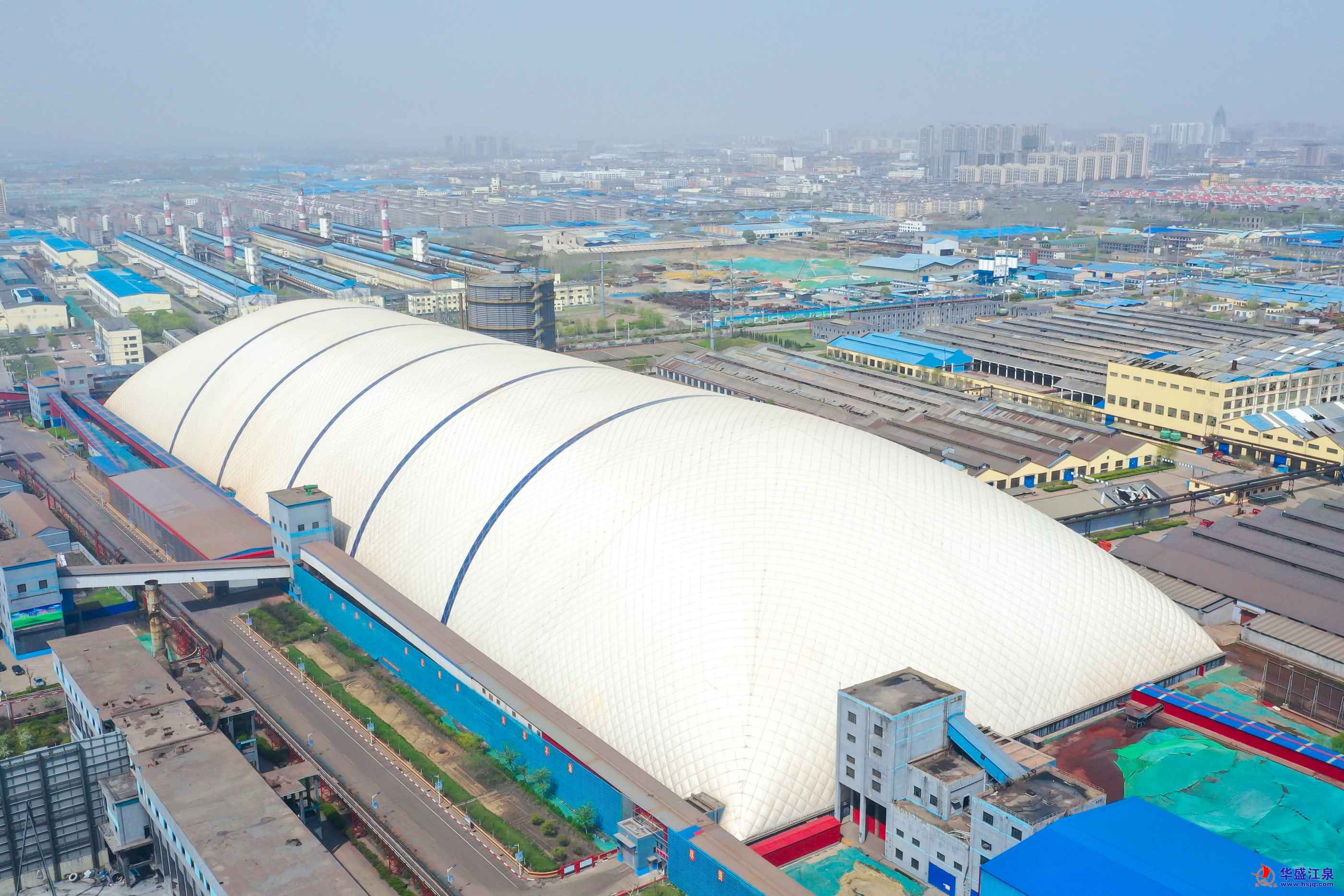 据了解,钢铁事业部气膜大棚采用气承式膜结构,长437米,高50米,跨度140米,总占地面积为61180平方米,是目前亚洲单体面积最大的封闭式气膜大棚。该气膜大棚内部空间大,视野开阔,具有抗震性好、零污染、节能效果强、使用寿命长等优越特点,膜材使用年限达20年以上。集团钢铁板块搬迁后,该气模大棚具有极大的开发价值和利用优势。